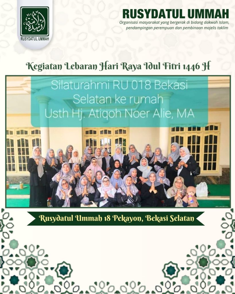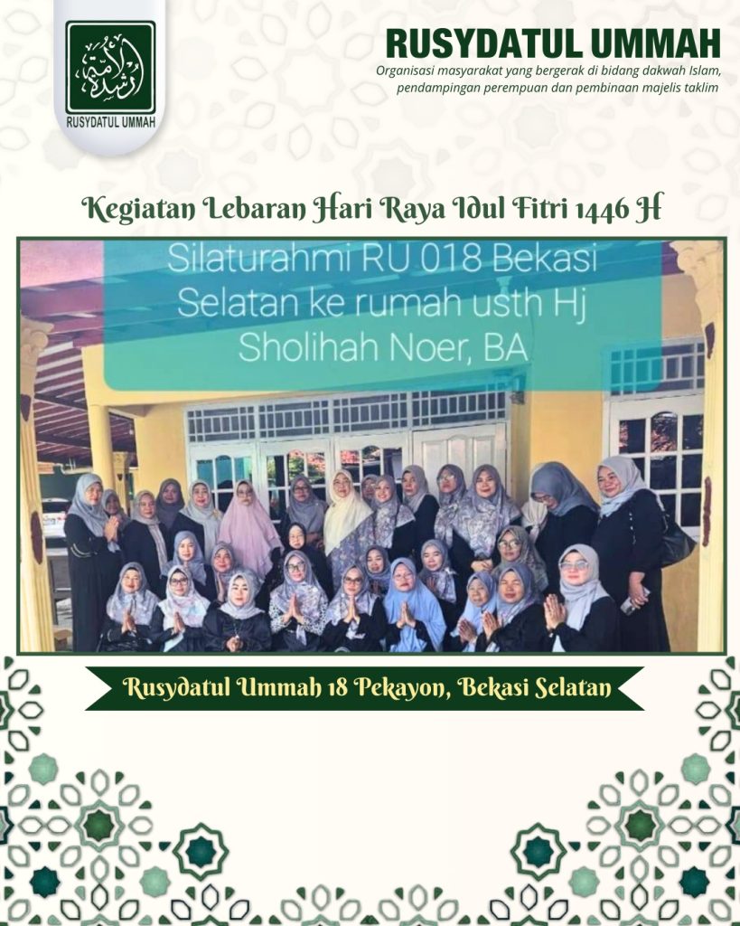 Kegiatan Lebaran Hari Raya Idul Fitri 1446 H. Rusydatul Ummah 18 Pekayon, Bekasi Selatan Posted on May 7, 2022August 27, 2025 by Rusydatulummah